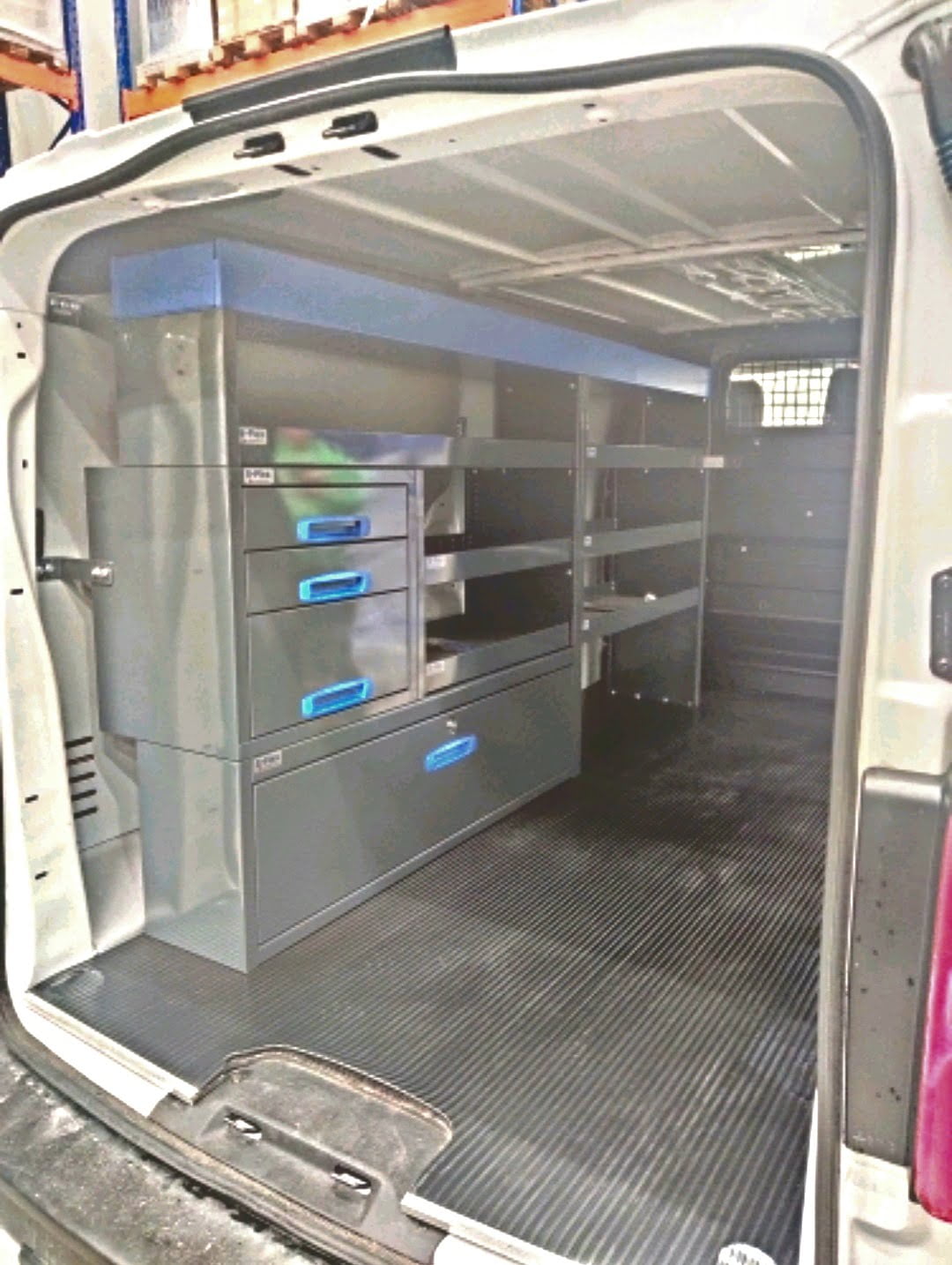 Toyota Proace pitkä L2 pakettiauton hyllyt laatikostolla LVI-asentajan käyttöön, asiakaskokemus. Asennus Juvanmalmilla.