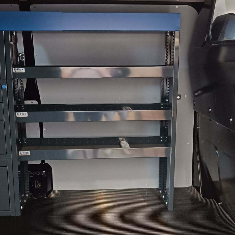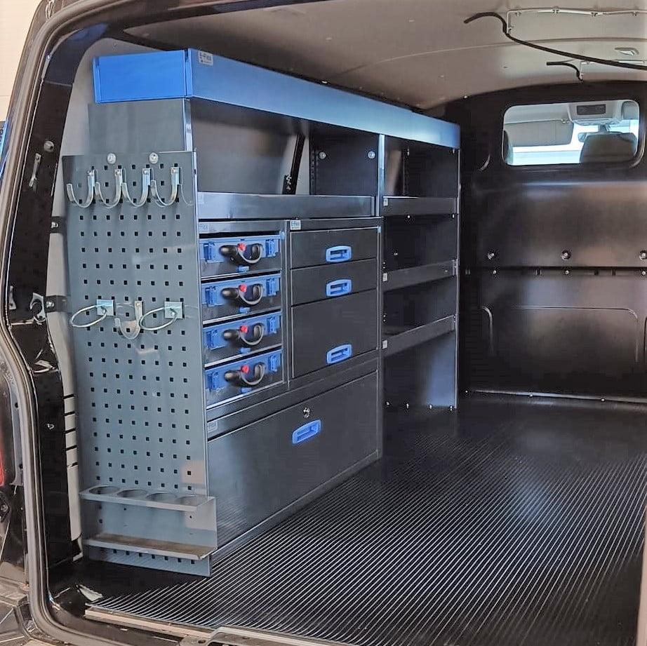 Volkwagen Transporter pitkä, pakettiauton hyllyt rakennusyrittäjän käyttöön, asiakaskokemus. Asennus tehtiin toimipisteellämme Tuusulassa kahteen samanlaiseen autoon.