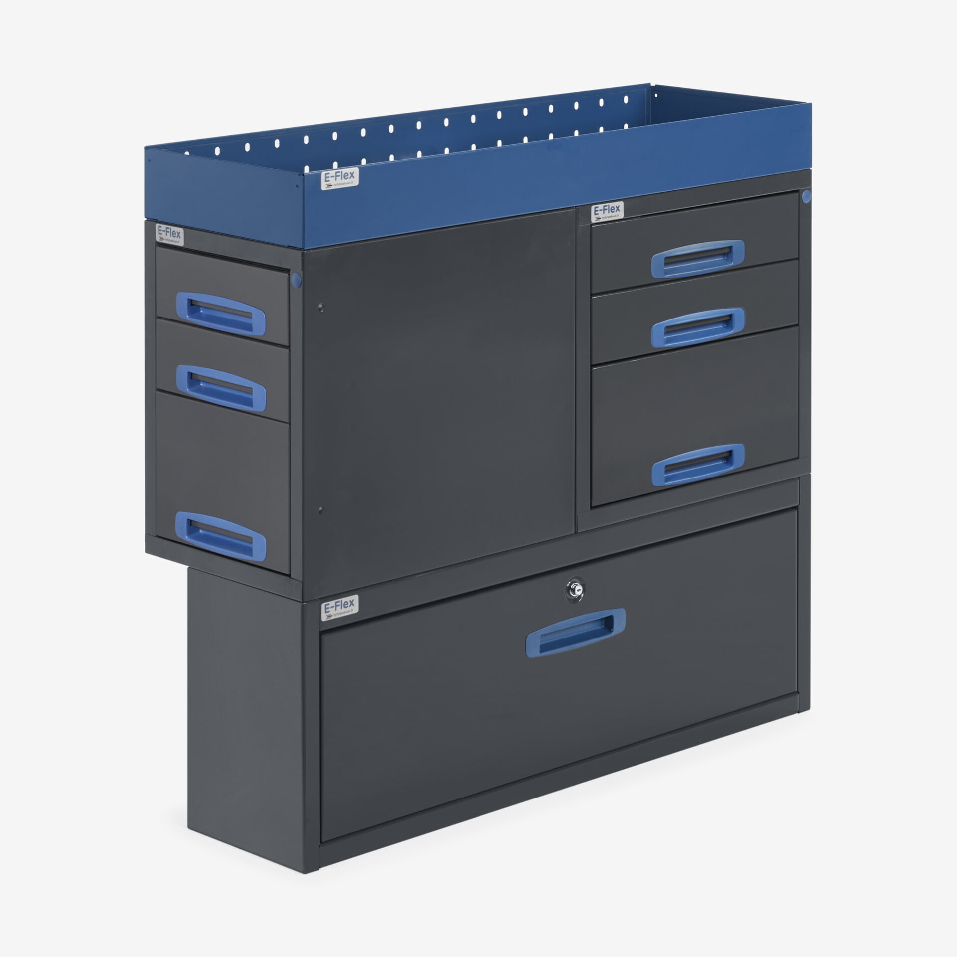 1 kpl päädystä aukeava kolmen vetolaatikon moduuli (1kpl 20cm ja 2kpl 10cm) sis. 3kpl tilanjakajaa/laatikko