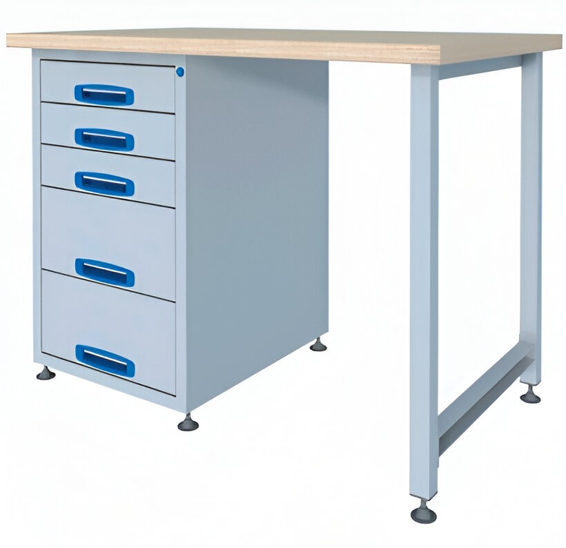 Laadukas jykevä työpöytä ammattikäyttöön halliin tai tuotantotilaan. Paksu lakattu vaneritaso tarjoaa miellyttävän ja luotettavan työskentelypinnan