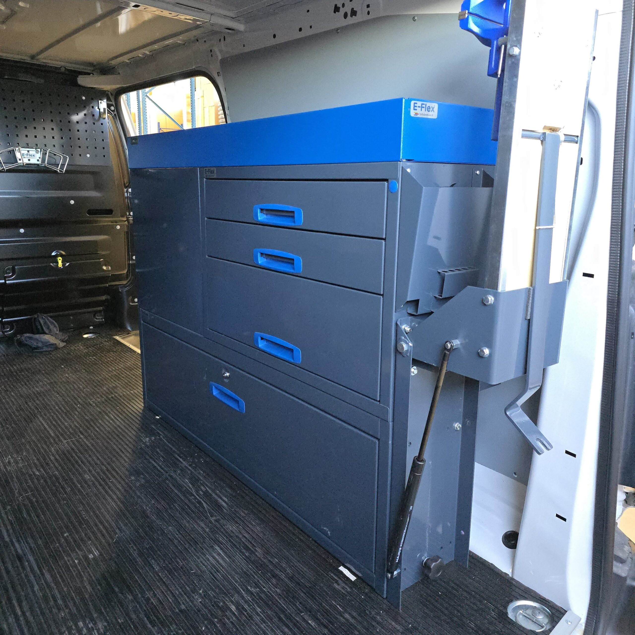 Tämä kompakti hyllystö on suosittu valinta seuraaviin pakettiautomalleihin lyhyelle sivuseinälle: Citroen Jumpy pitkä (XL), Fiat Scudo pitkä, Opel Vivaro pitkä (L2), Peugeot Expert (XL), Toyota Proace pitkä L2. Erityisenä etuna on kapea alakaappi, joka on suunniteltu sopimaan täydellisesti pyöräkotelon kohdalle näissä automalleissa, joissa tavaratila on täsmälleen samanlainen. Tämä tekee siitä optimaalisen ratkaisun tilanteisiin, joissa tavallinen alakaappi ei sovi pyöräkotelon kohdalle. Täydennä kalusteesi tarvittavilla lisävarusteilla.