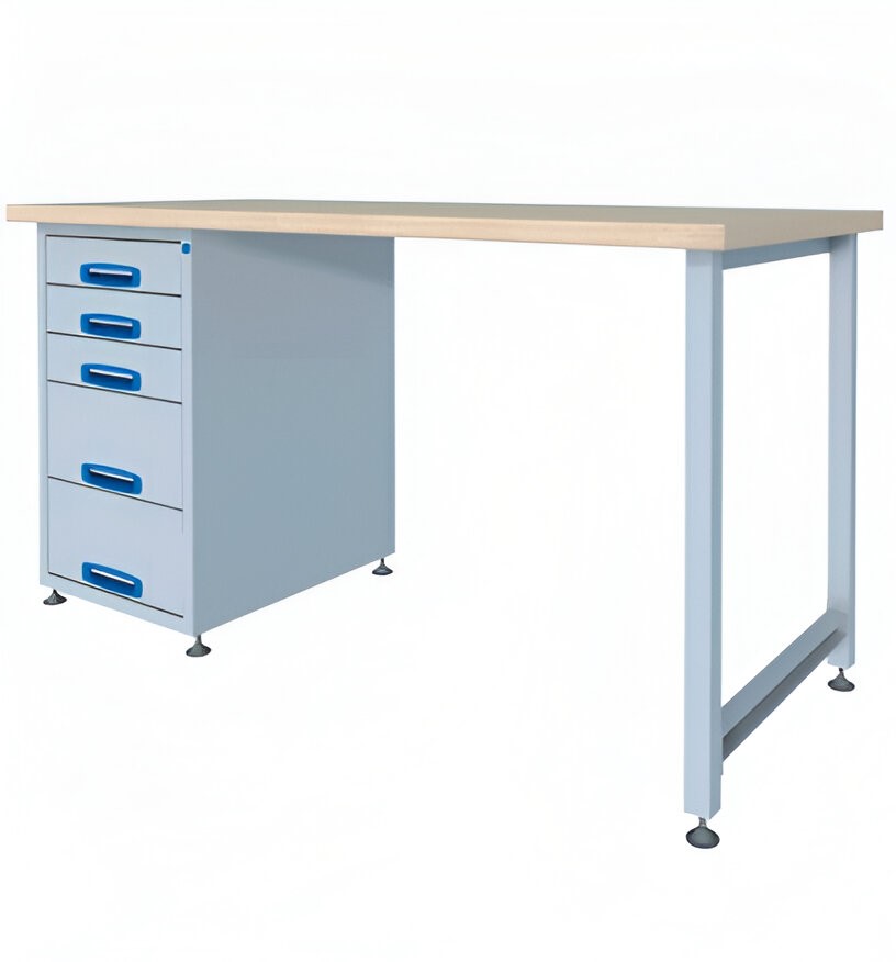 Laadukas jykevä työpöytä ammattikäyttöön halliin tai tuotantotilaan. Paksu lakattu vaneritaso tarjoaa miellyttävän ja luotettavan työskentelypinnan