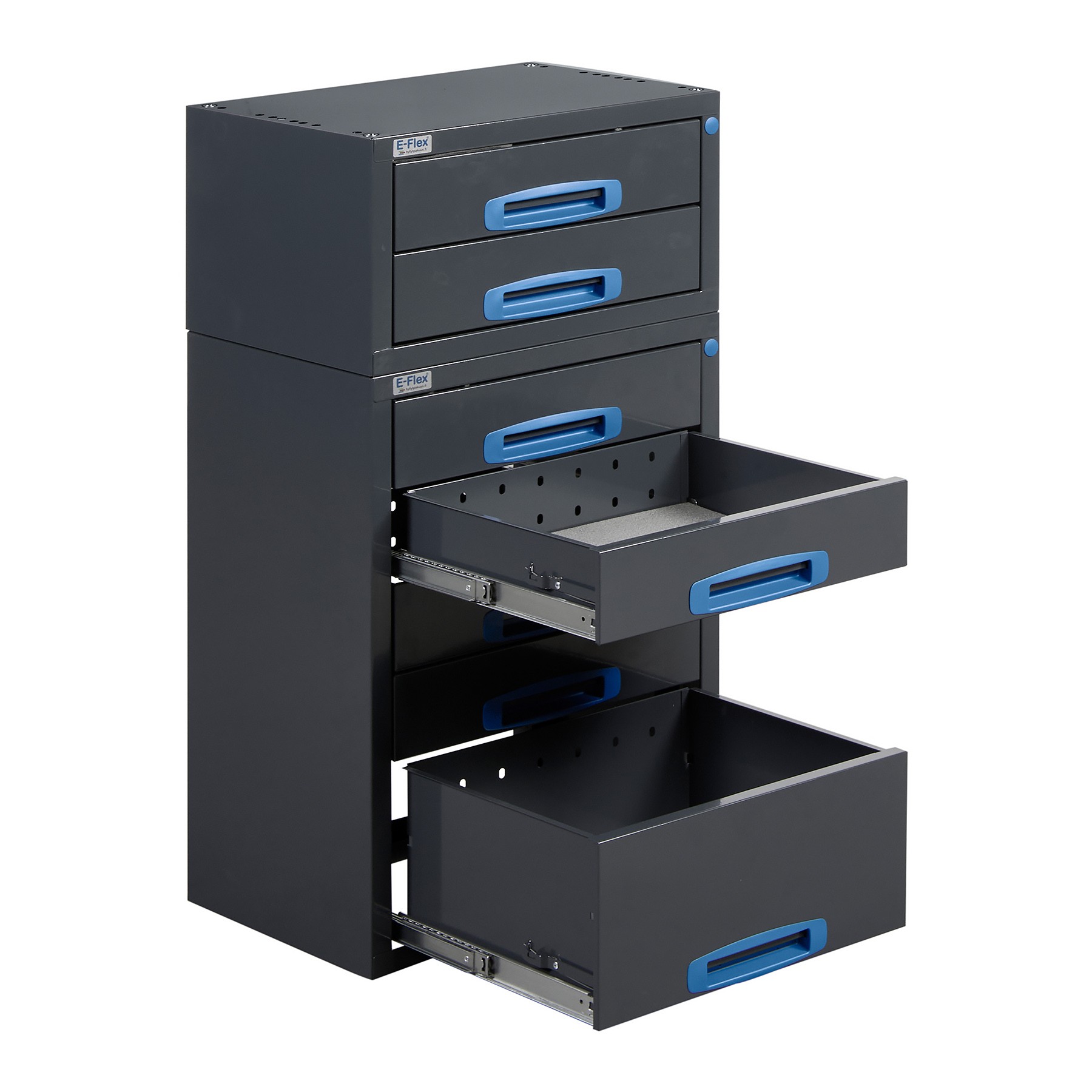 Jämerät E-Flex pakettiauton vetolaatikostot ovat suosittuja ja monipuolisia pakettiauton säilytystiloja. E-Flex vetolaatikostojen pääväri on pulverimaalattu antrasiitti ja toisena värinä on tyylikäs pulverimaalattu sininen. Moduuleista koosttuvat tuotekokonaisuudet on helppo ja selkeä kasata sekä asentaa. Tuotekokonaisuudet ovat moduulirakenteensa vuoksi myös hyvin muunneltavissa. Annamme tuotteille 10 vuoden takuun, joka takaa että nämä todella kestävät vaativammassakin ammattikäytössä. Täydennä kalusteesi tarvittavilla lisävarusteilla.