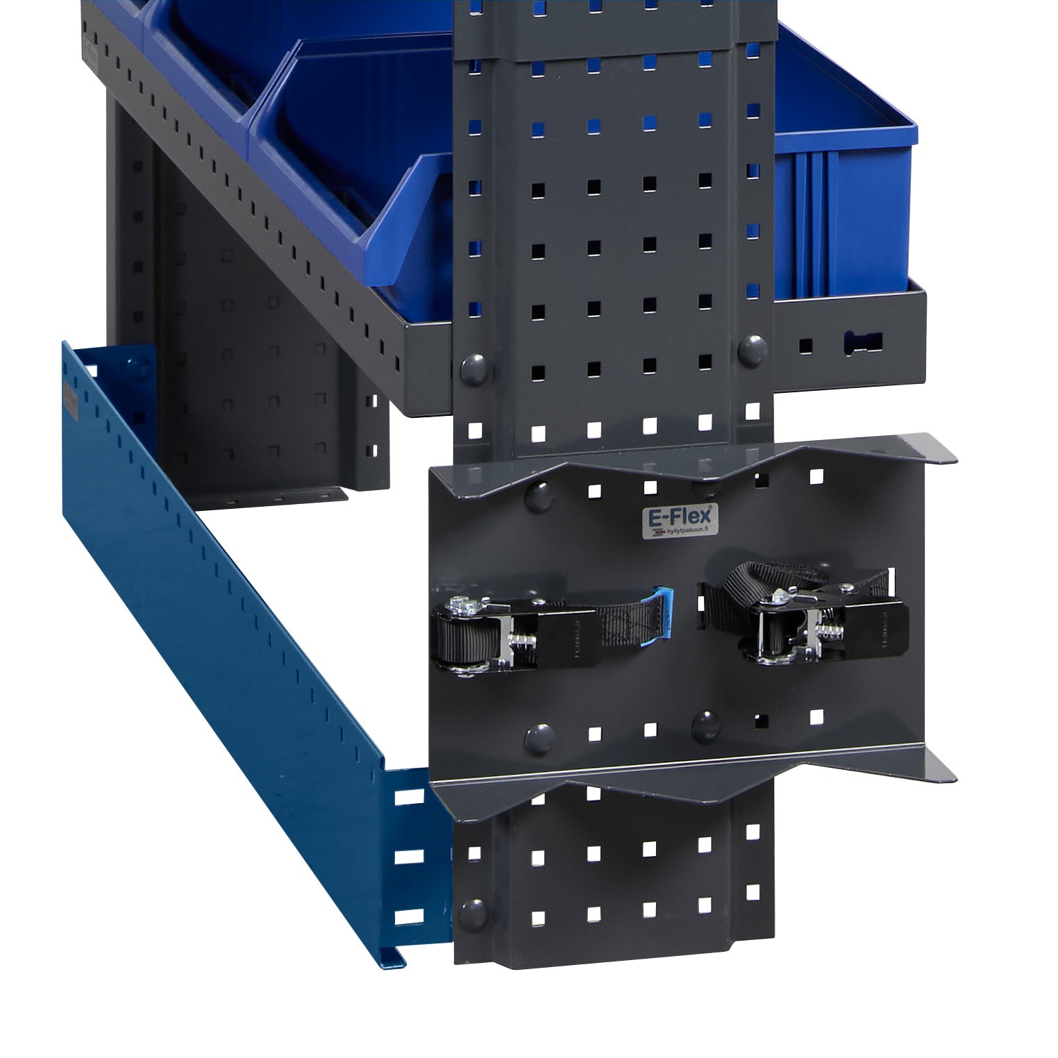 E-Flex Kaasupulloteline pakettiautoon 2 pullolle on suunniteltu kaasupullojen tai muiden vastaavien säiliöiden, kuten sammuttimien, turvalliseen ja hallittuun kiinnitykseen pakettiautossa. Telineen korkeus on 20 cm ja leveys 36 cm, ja vahva rakenne pitää pullot tukevasti paikallaan myös vaativissa ajo-olosuhteissa. Teline soveltuu erityisesti kahdelle pienelle kaasupullolle tai yhdelle sammuttimelle.