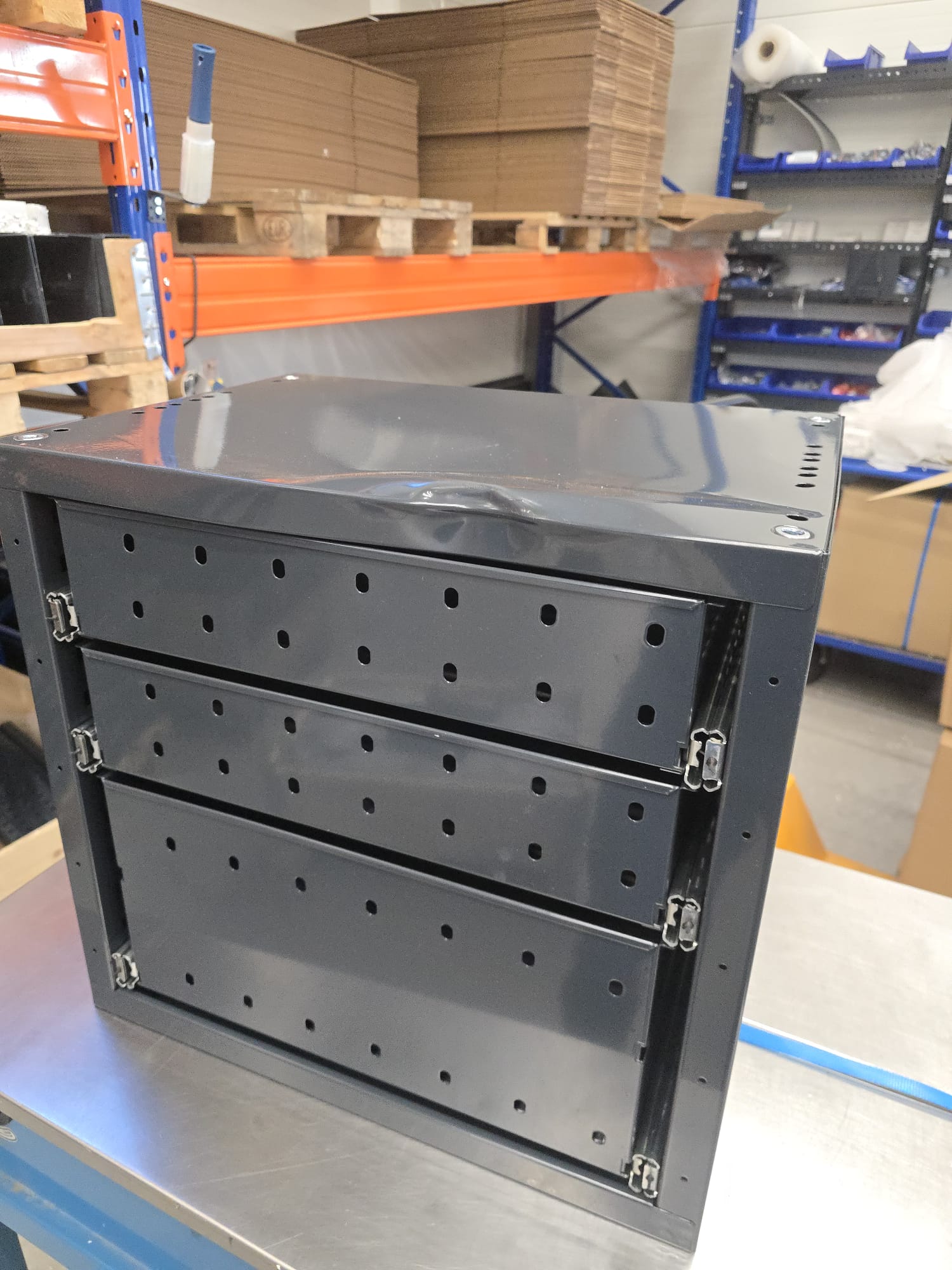 Laatikot ja kiskot toimivat. Tuotteet ovat uusia.