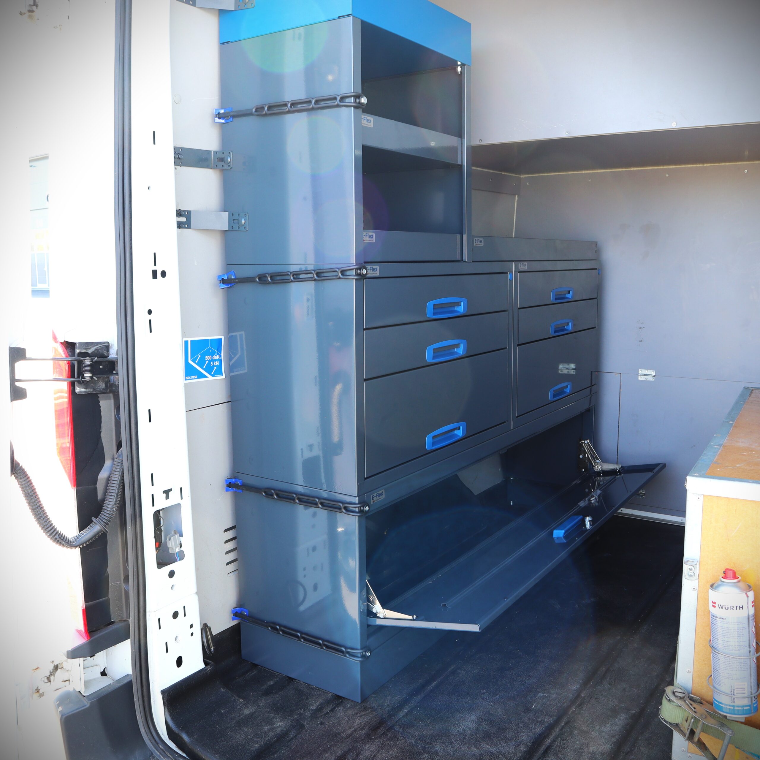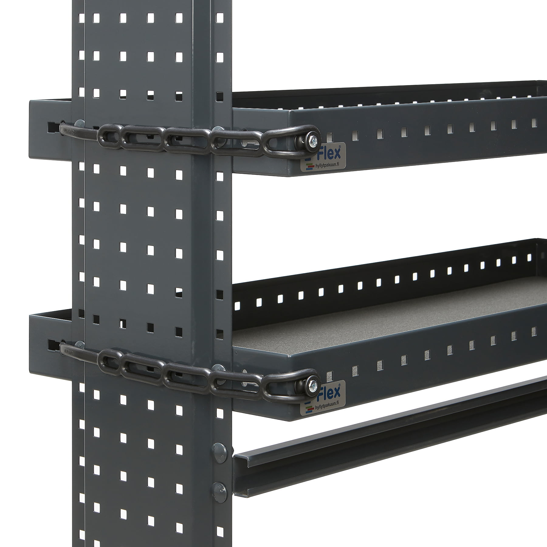 Kumikiinnitinsarja on monipuolinen lisävaruste pakettiautoon. Tämän avulla voit sitoa hyllyn päätyyn ja hyllytasoille sekä reikälevyyn esineitä. Kumikiinnittimen kantaosa ja vastanuppi kiinnitetään mukana toimitettavilla läpipulteilla.