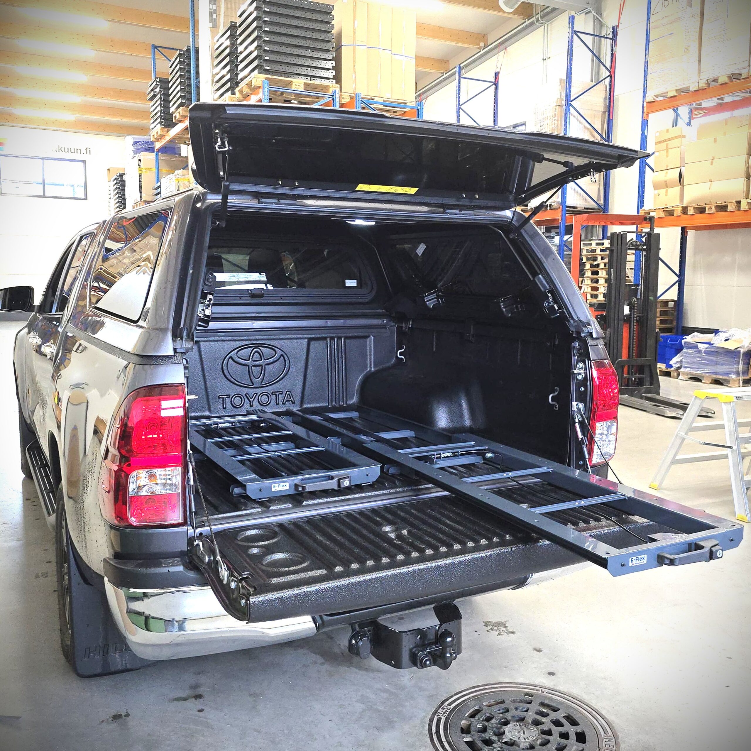 Teräsrunkoinen ja vahvarakenteinen E-Flex liukutaso on erinomainen ratkaisu pakettiautojen ja pick-up -ajoneuvojen painavien ja suurien tavaroiden kuljetustarpeisiin. Liukutason avulla voit helposti vetää tarvikkeet auton ulkopuolelle, mikä tekee lastauksesta ja purkamisesta nopeaa ja vaivatonta. Liukutaso on saatavilla kolmessa eri leveydessä, ja se sopii vaativiin käyttöolosuhteisiin. Vain mielikuvitus on rajana mihin kaikkeen tämä tuote tuokaan apua.