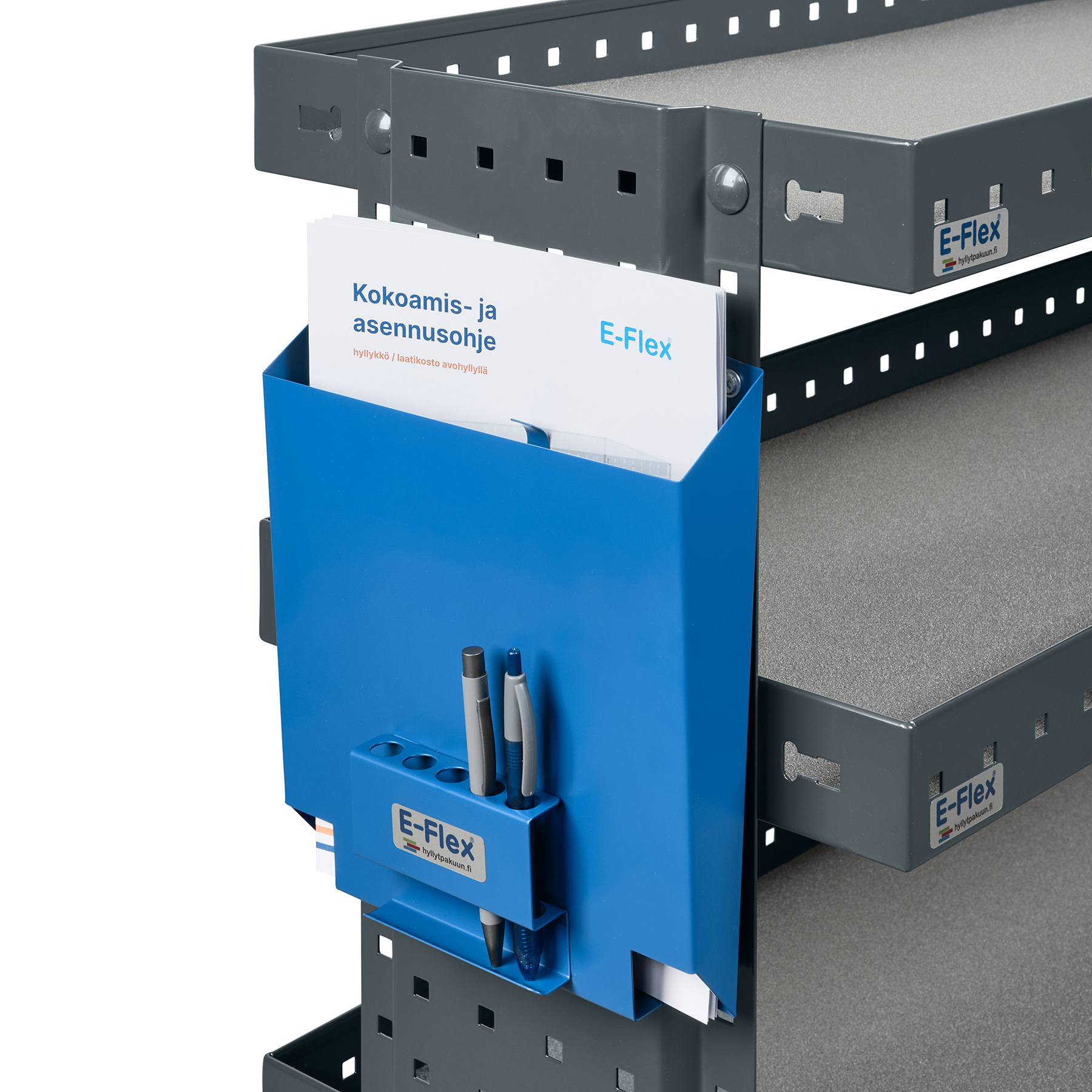 Pidä tärkeät paperit ja kynät aina helposti saatavilla E-Flex Paperitelineen avulla!